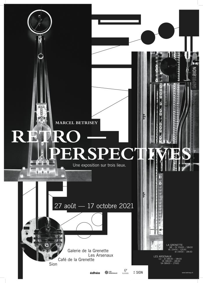 Pour la mise en valeur de l’exposition "Rétro-Perspectives", qui se tient à Sion du 27 août au 17 octobre 2021, Marcel Bétrisey a sollicité les élèves graphistes. Elles et ils ont soumis pas moins de 29 projets d’affiche et de journal répertoriant l’ensemble des œuvres exposées. Après examen des propositions, un jury a choisi de retenir le projet imaginé par Enya Fux pour la réalisation de l’affiche.