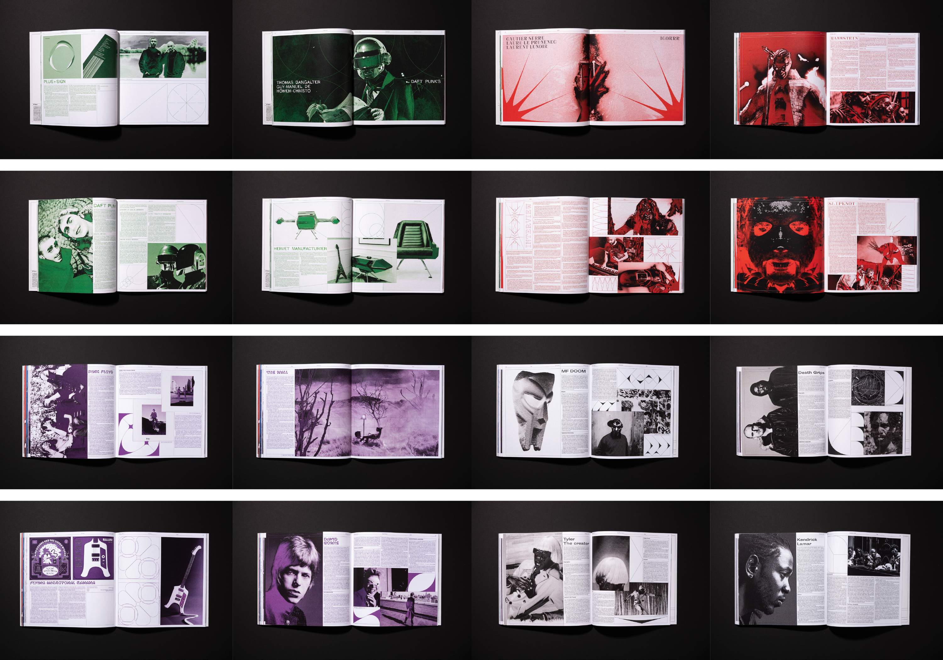 33 Tours, magazine au format carré, a pour thématique la musique. Il se divise en 5 chapitres qui abordent différents genres musicaux: la musique électronique, le métal, le jazz, le rock et le rap. Les chapitres se composent d’une description détaillée du genre musical suivie d’une sélection d’artistes populaires. Ils se distinguent par l’utilisation d’une seule couleur et d’une esthétique inspirée par des récurrences graphiques présentes sur les pochettes d’album. 33 Tours vous permet de découvrir ou redécouvrir de grands noms de la musique ainsi que l'origine et l’histoire de genres musicaux.