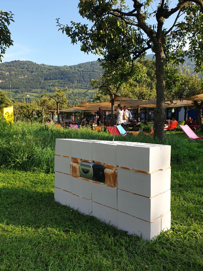 Ils et elles ont entrepris de travailler autour du motif de la radio. Celui-ci s'est imposé lors de la phase d’observation: le chantier lui-même n’était pas accessible, mais seulement perceptible à l’oreille. On pouvait entenre le bruit des travaux et la radio allumée à longueur de journée. Les étudiant·e·s ont été amené·e·s à réfléchir à la dimension sonore comme à la dimension sculpturale de l’objet et à proposer des interventions temporaires. L’aspect portatif du medium a aussi conduit au nomadisme d’un groupe d’étudiant·e·s dans un lieu culturel. Les travaux exposés au soir du 29 août sont le résultat de ces questionnements.